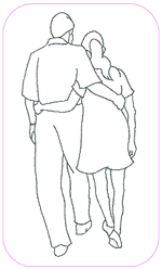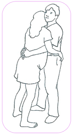 Slow-dancing:The mother leans against her partner, resting her head on his or her chest or shoulder. The partner's arms are under the mother's, around her back, with fingers interlocked at her lock back. She can tuck her thumbs into the partner's waistband or belt loops for comfort. They sway, perhaps to music, and breathe in rhythm.