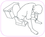 Lap Squatting:Sit on an armless straight chair. The mother sits on your lap facing you, straddling your thighs. Embrace each other. When a contraction begins, spread your thighs, allowing her buttocks to sag between. Have a support person or doula stand behind you and hold the mother's hands for safety. After the contraction, bring your legs together so the mother is sitting up on your thighs again. |
